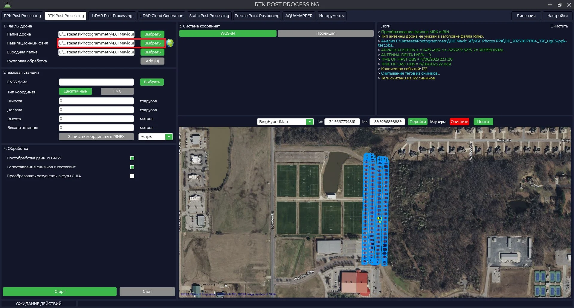 - High-accuracy photo georeferencing, including imagery from drones with built-in RTK/GNSS systems (DJI, Autel, etc.).